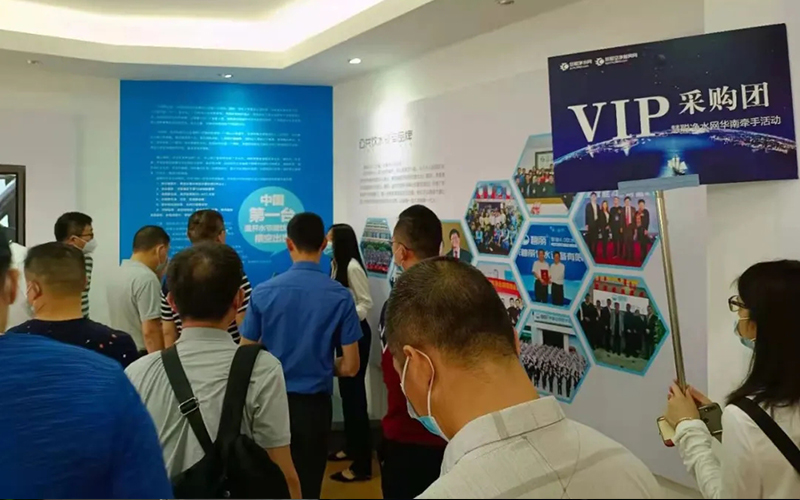 在碧麗營銷團(tuán)隊(duì)的簇?fù)硐?,慧聰買家團(tuán)先后參觀了碧麗文化展廳、生產(chǎn)車間、產(chǎn)品展廳、科研室,看碧麗是如何打造高品質(zhì)商用凈水產(chǎn)品。
