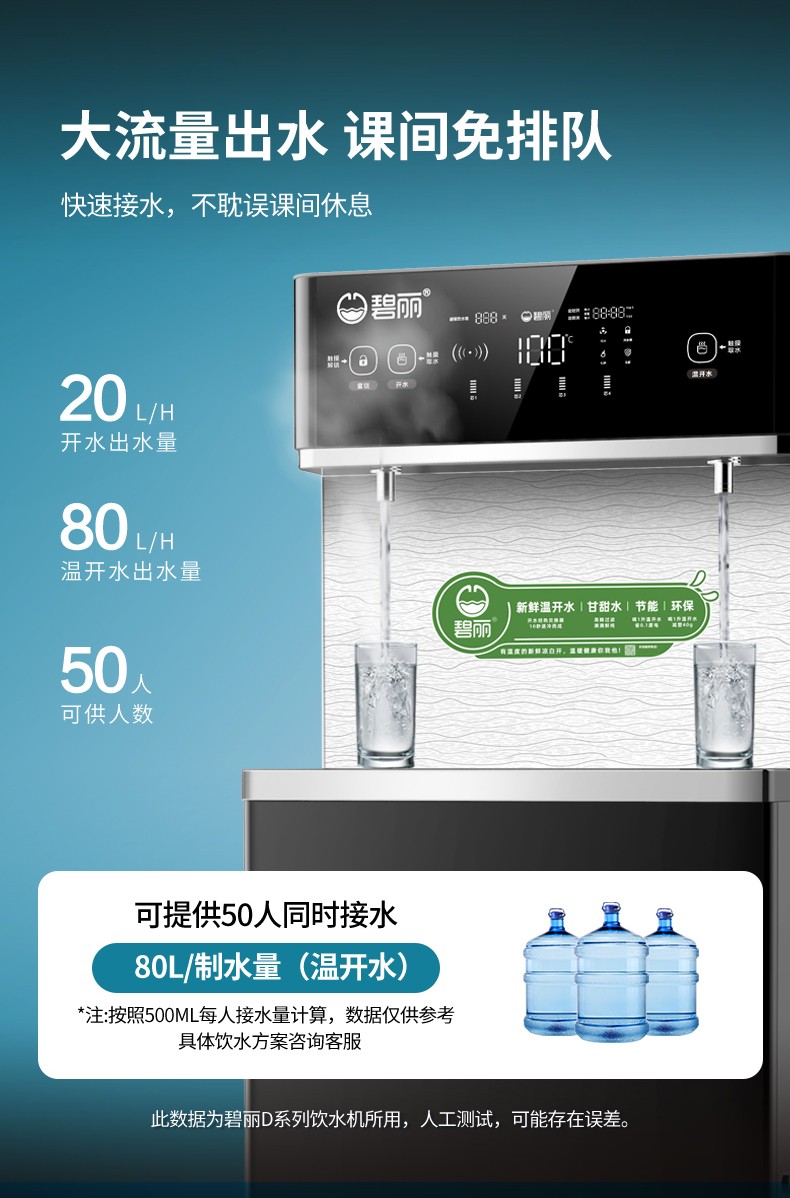 • 供 水 量:開水20升/時(shí),溫開水80升/時(shí)